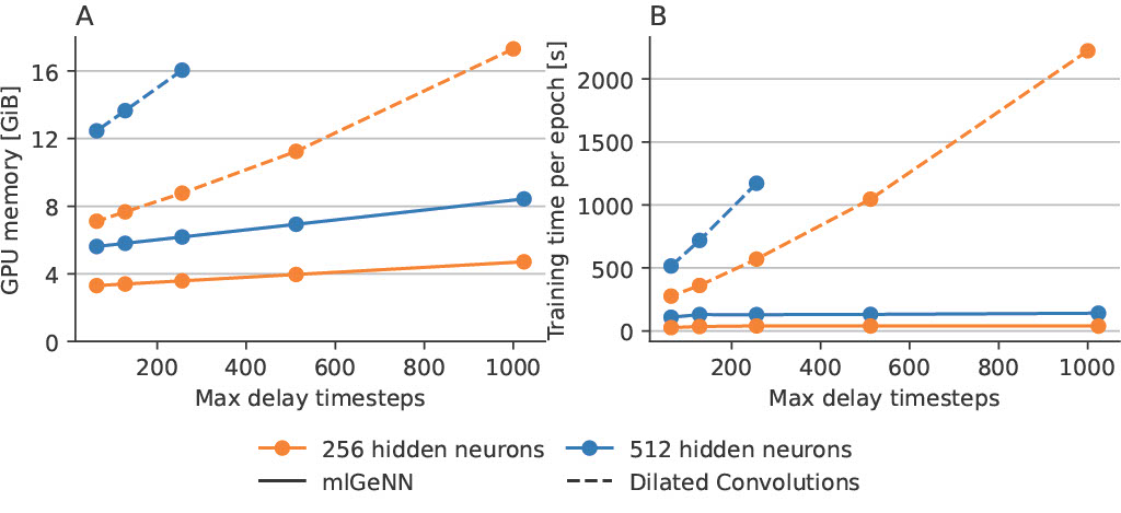 With the correct implementations this method becomes significantly more efficient than discretisaiton (i.e BPTT) based methods. With fixed network sizes and maximum delay timesteps, we outperform the DCLS based method both in terms of memory requirements in speed.